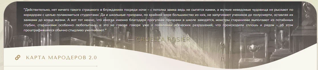 [indent]Дух соперничества силен в каждом воспитаннике Хогвартса, ведь с самого первого курса все они приучены нет-нет, да и поглядывать на клепсидру своего факультета, проверяя сколько еще усилий нужно приложить, чтобы именно их стяг реял в Большом Зале в конце года. Стремиться к тому, чтобы победы одного обращались во всеобщее ликование. Но знаете ли вы, что в действительности личные достижения греют гораздо сильнее? Задумывались ли когда-либо о том, как могли бы обратить собственный успех себе на пользу? Прислушайтесь к Теням, что таятся в Хогвартсе. Они споют вам свою сладкую песнь о том, насколько это приятно.