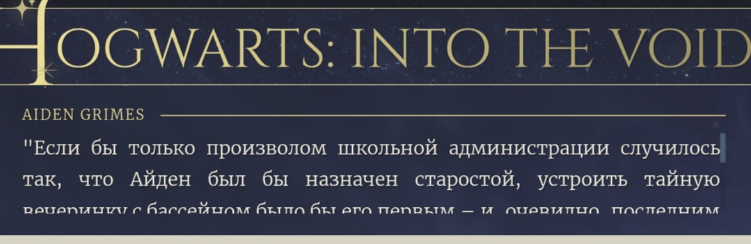 "Слишком мало времени прошло, чтобы она могла забыть, как это страшно и неприятно стать изгоями только потому, что родился с определенной фамилией и положением в обществе. Давление уже давно устаревших ярлыков ощущал каждый слизеринец, но почему-то никто из профессоров не спешил помогать, не старался разобраться или установить справедливость."